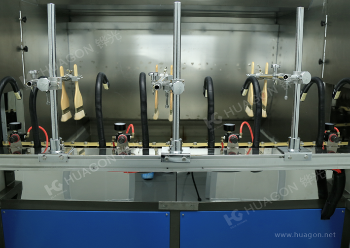 上料-(預留素材預熱)-毛刷靜電除塵-自動噴涂1-預熱-自動噴涂2-預熱-自動噴涂3-預熱-自動噴涂4-流平-烘烤固化-冷卻-下料