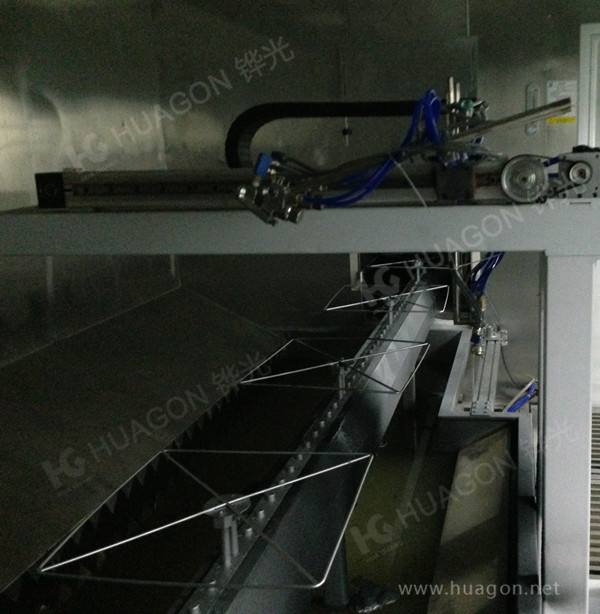 上料-手動靜電除塵-素材預熱-自動追蹤噴涂-靜置-隧道式烘烤-冷卻-下料